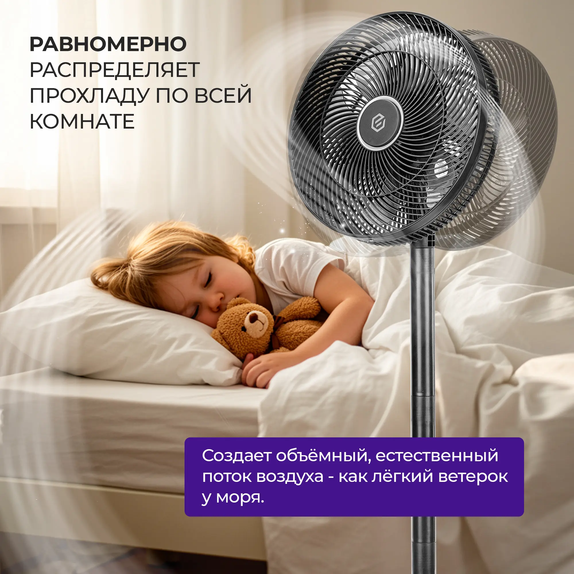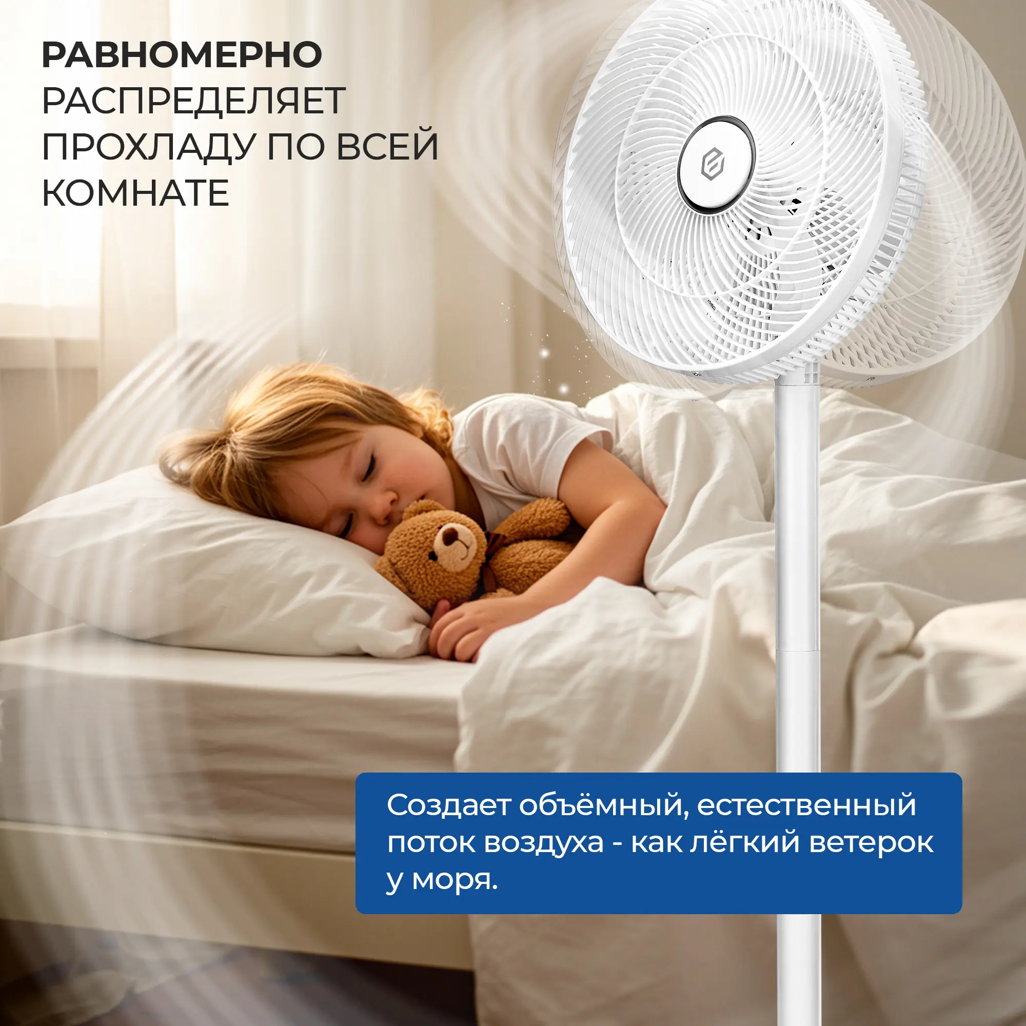 Вентилятор напольный для дома Evolution AirLeaf AL-703M White или Black сочетает в себе классический элегантный дизайн, надежность, удобство эксплуатации, обеспечивает комфортный микроклимат в помещении даже в самые знойные дни. Благодаря особой технологии лопасти практически не создают вибрацию, поэтому устройством удобно пользоваться и днем, и ночью.