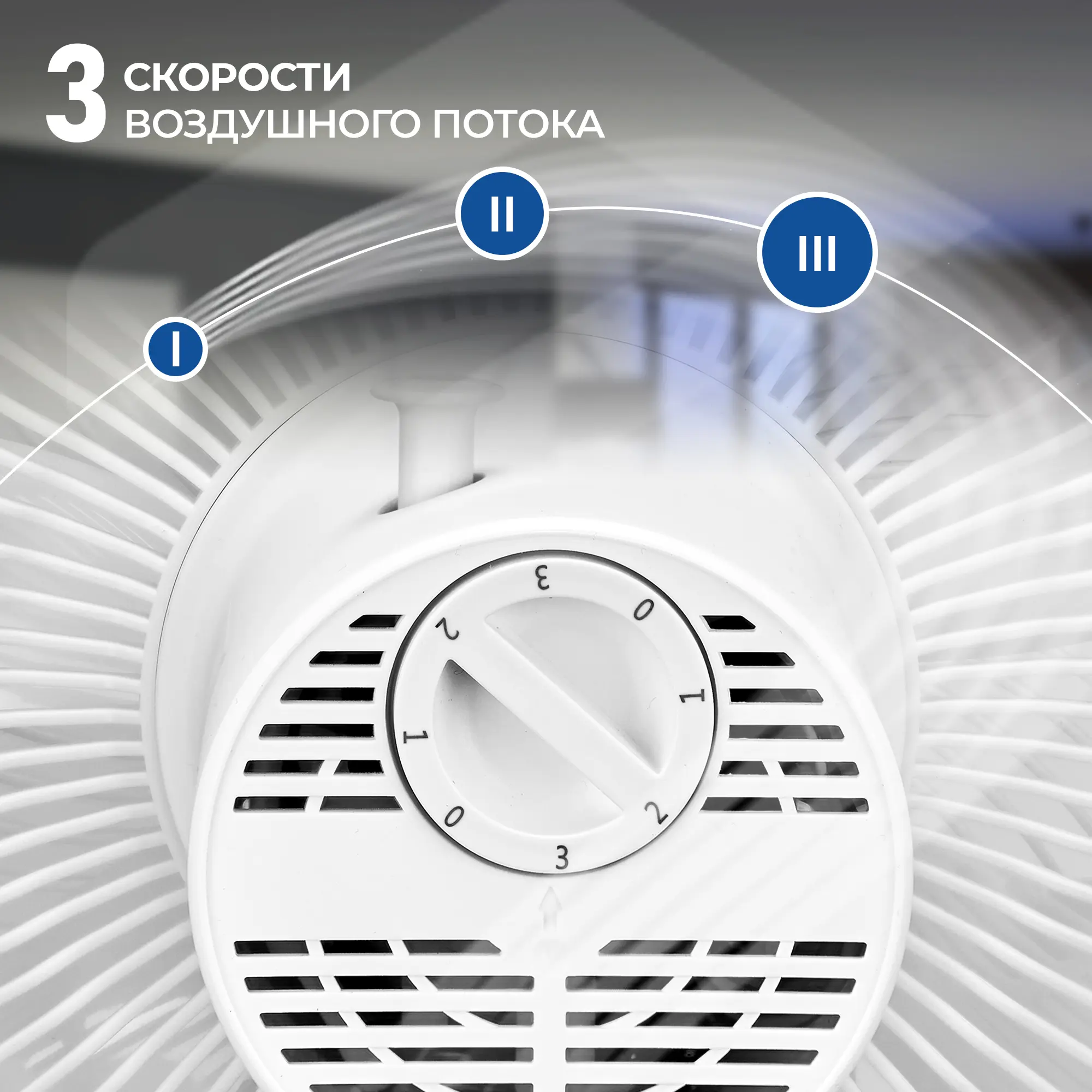 - 3 режима скоростей воздушного потока позволяют выбирать и регулировать необходимый уровень охлаждения.