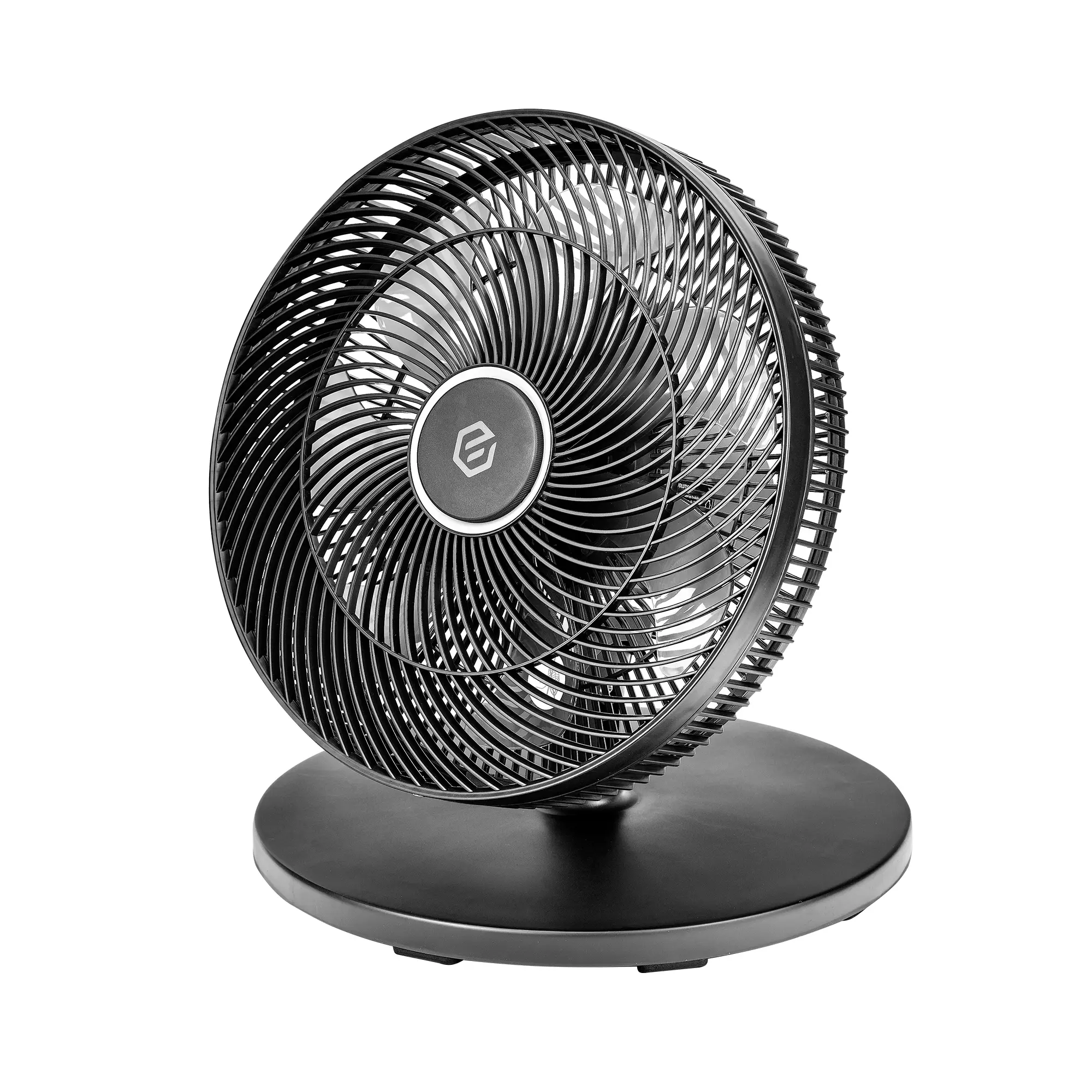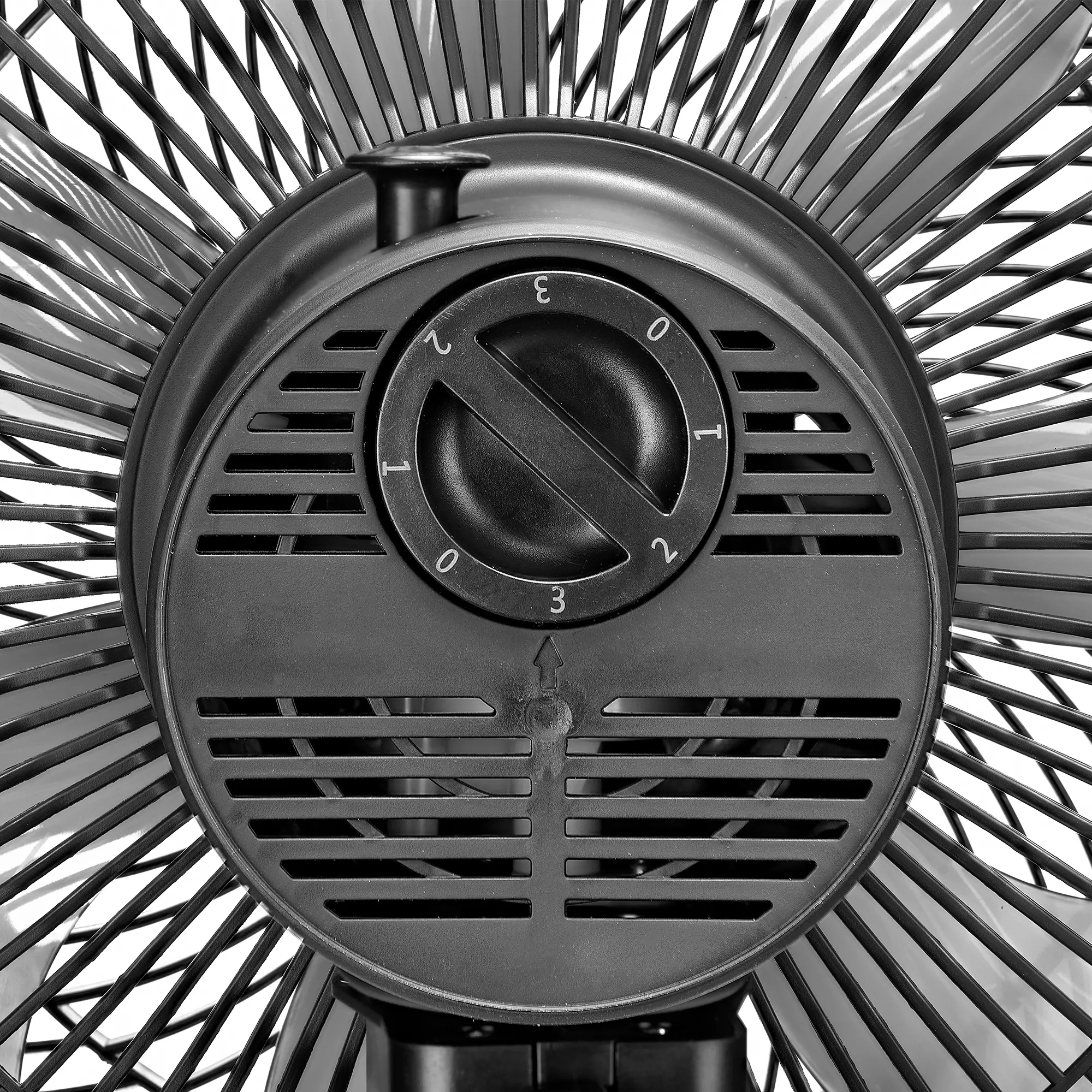 - Вентилятор имеет удобное механическое управление: легко устанавливать угол наклона, а переключать режимы можно с помощью поворотного тумблера в центре защитной решетки.